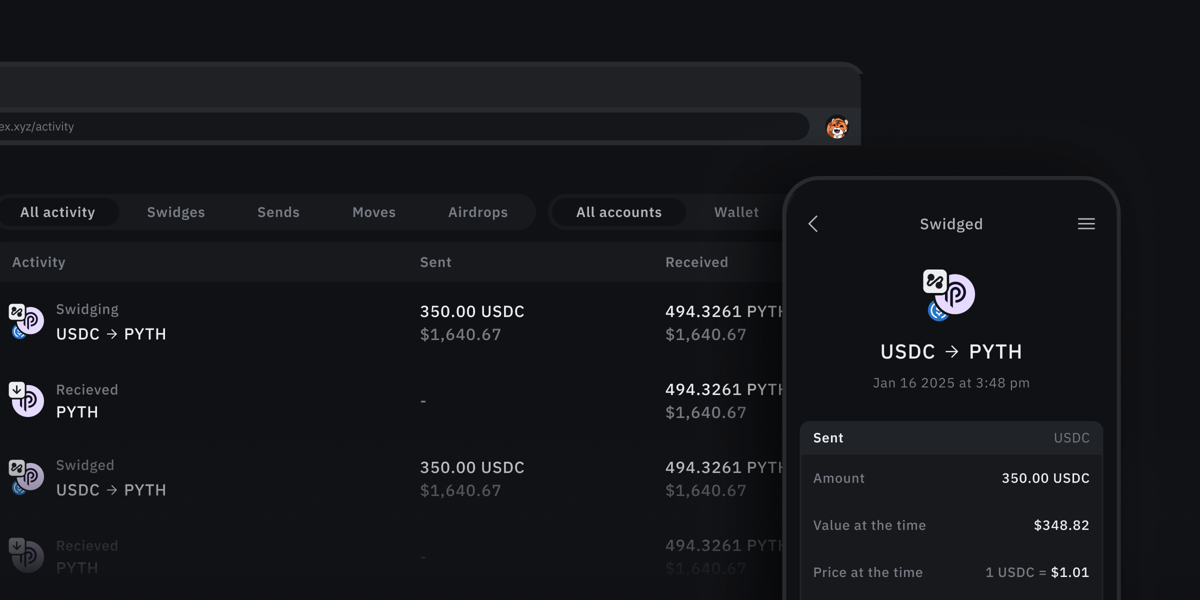 There is now also a top-level Activity page where you’ll find a log of all activity across your Infinex Account, regardless of where the action originated.