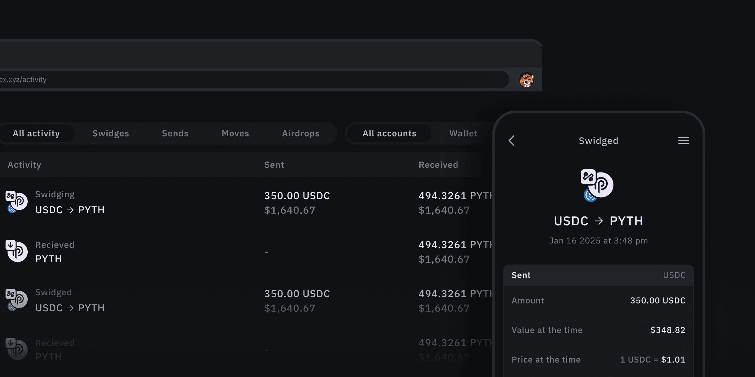 There is now also a top-level Activity page where you’ll find a log of all activity across your Infinex Account, regardless of where the action originated.