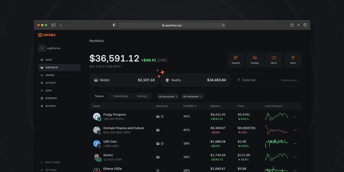 We rolled out a unified view to see all your Infinex assets, Wallets and Vaults, in one place, at a glance. You can now: