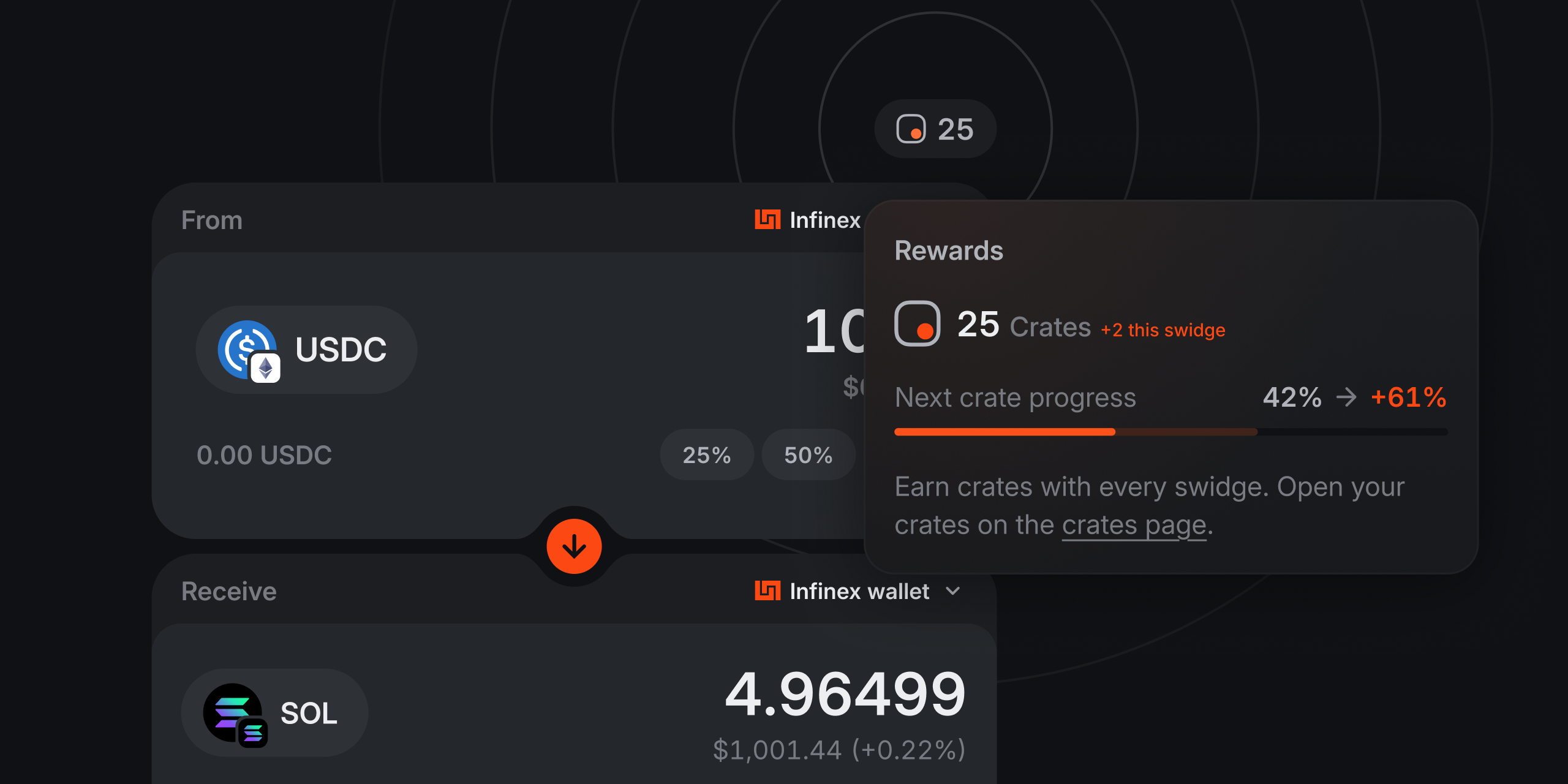 We’re building for the long term. Swidge fees are an important component of Infinex revenue and token buybacks, and enable us to reward users with crates.
